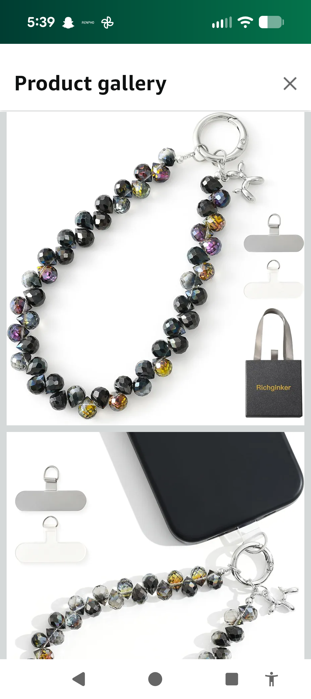Crystal Phone Wrist Strap Phone Charm Chain Keychain Beaded Cellphone Lanyard with Tether Tab Hands-Free Wristlet Bracelet Wrist Grip Strap for Women, D-Black