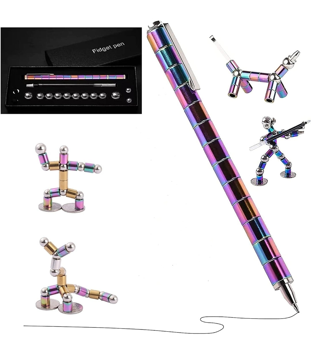 Plmzjm Fidget Pen Toy, Stress Relieving Creative Decompression Metal Pen, Multifunctional Deformable Writing Pen Novelty Toys Gifts for 8-12 Years Old Kids Students Teenage Boys Girls