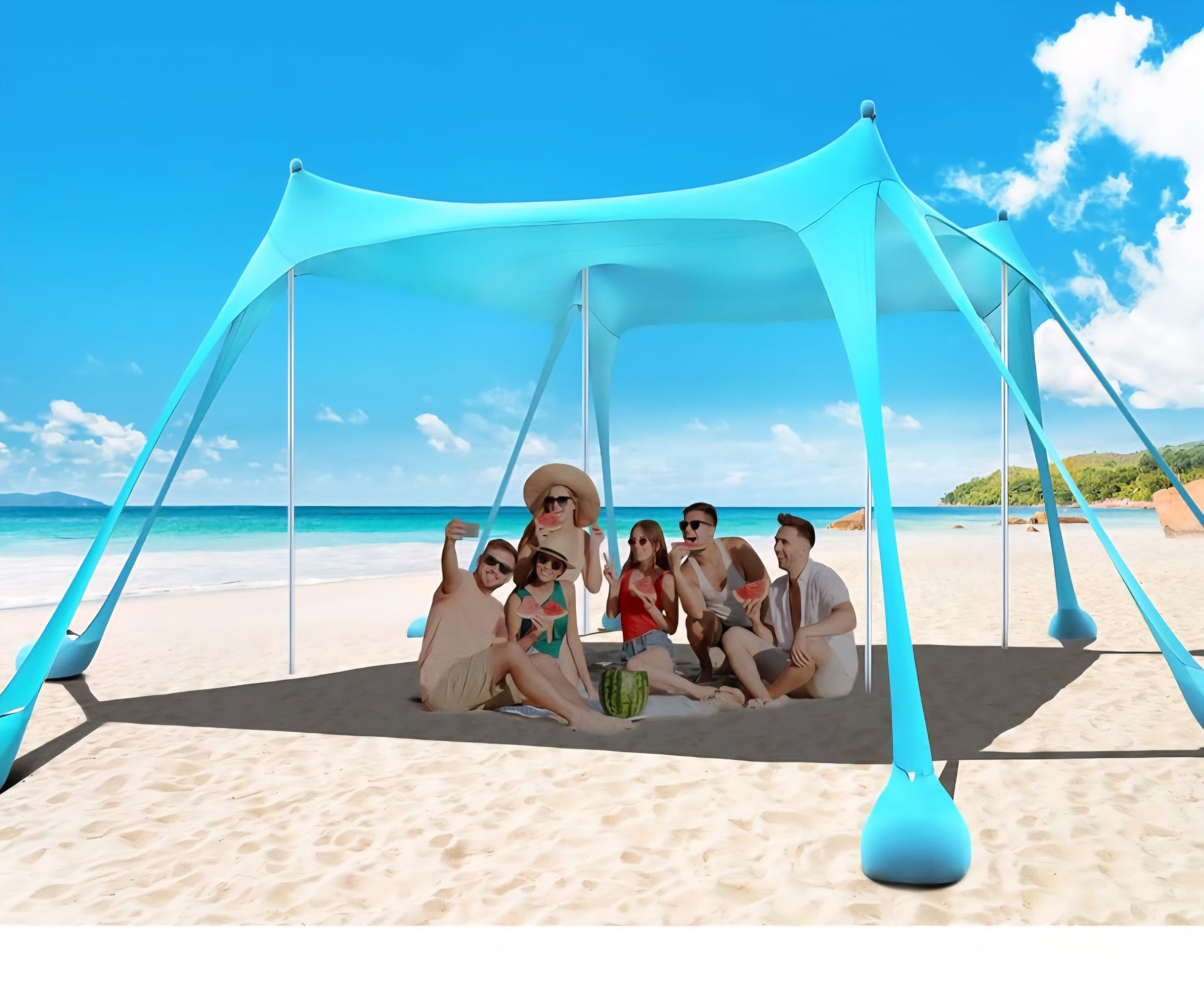 This durable, easy-to-set-up beach tent offers shelter from the sun and wind, making your beach day more enjoyable. With its sturdy construction and spacious design, this tent provides ample shade and protection for your family. Enjoy the beach without worrying about harmful UV rays or strong winds.