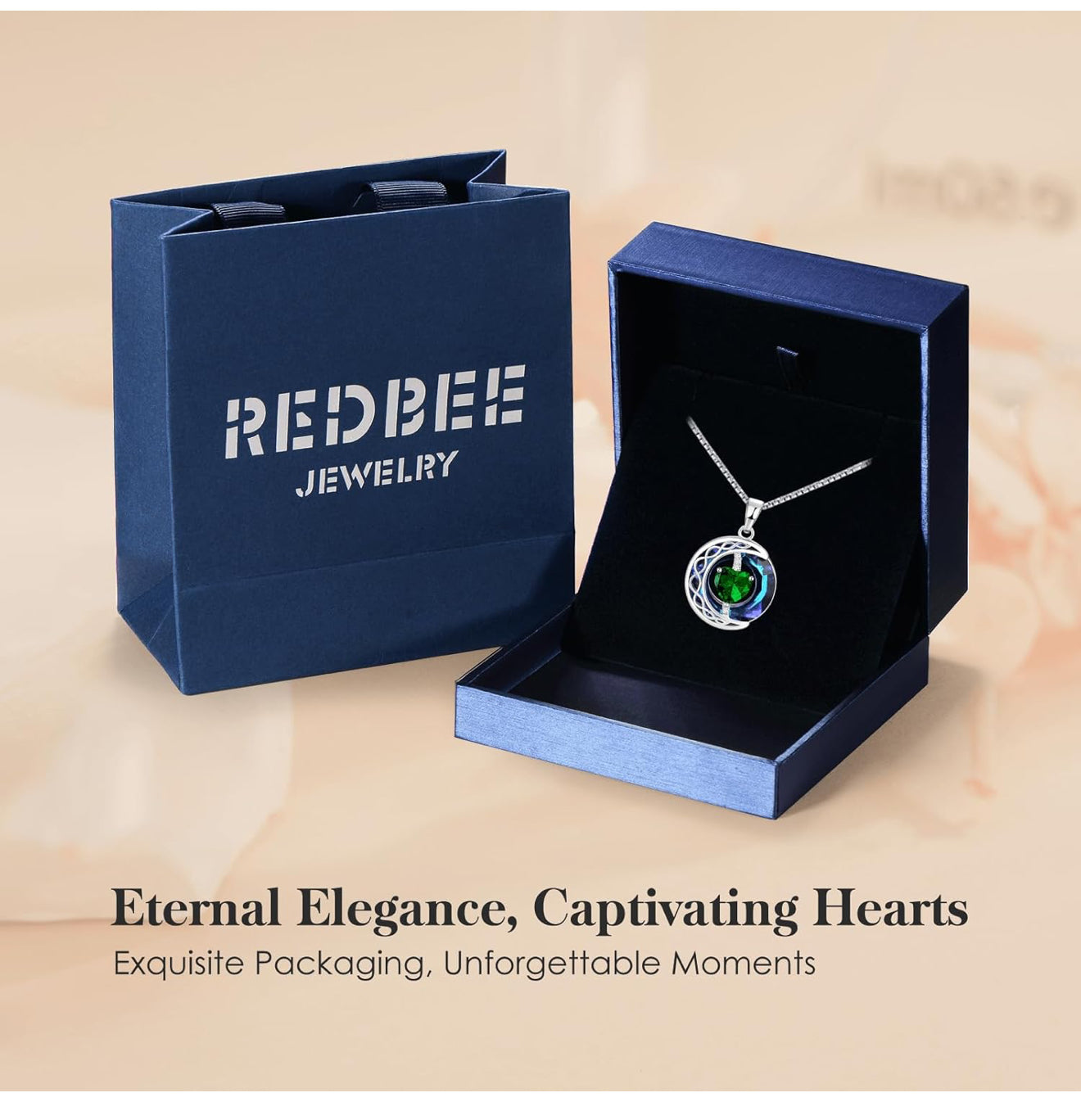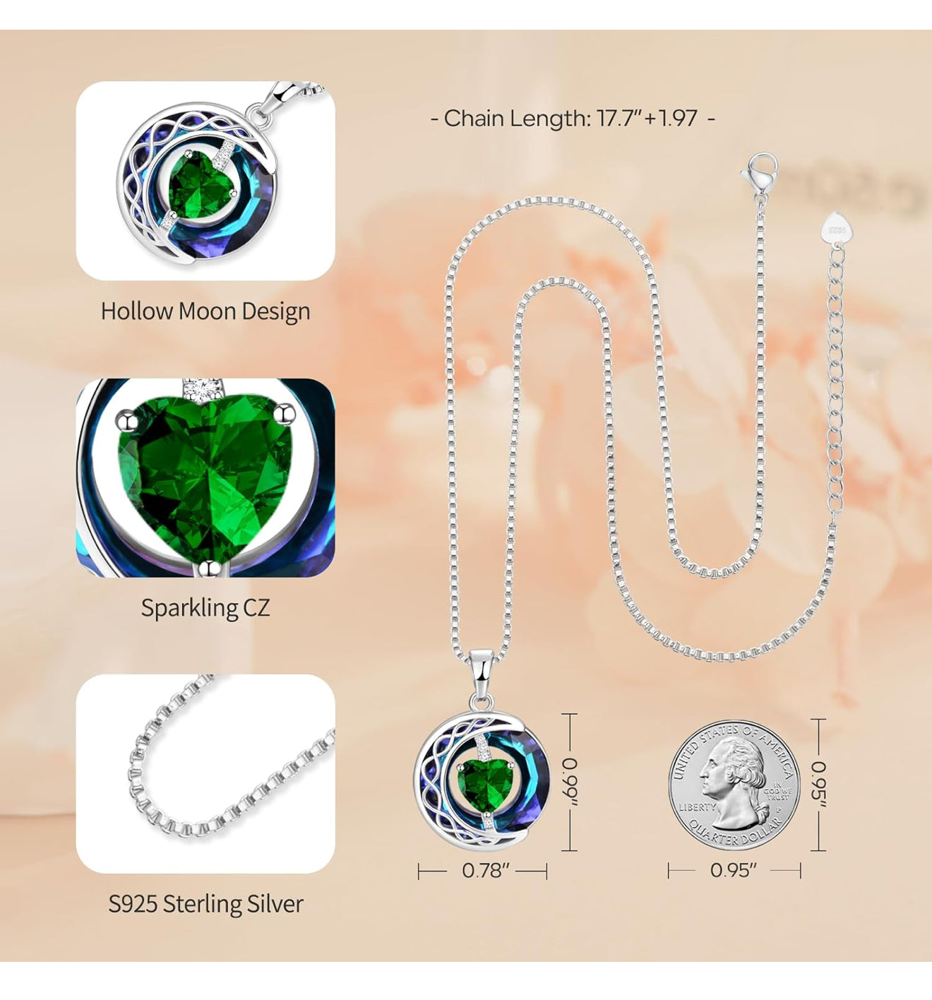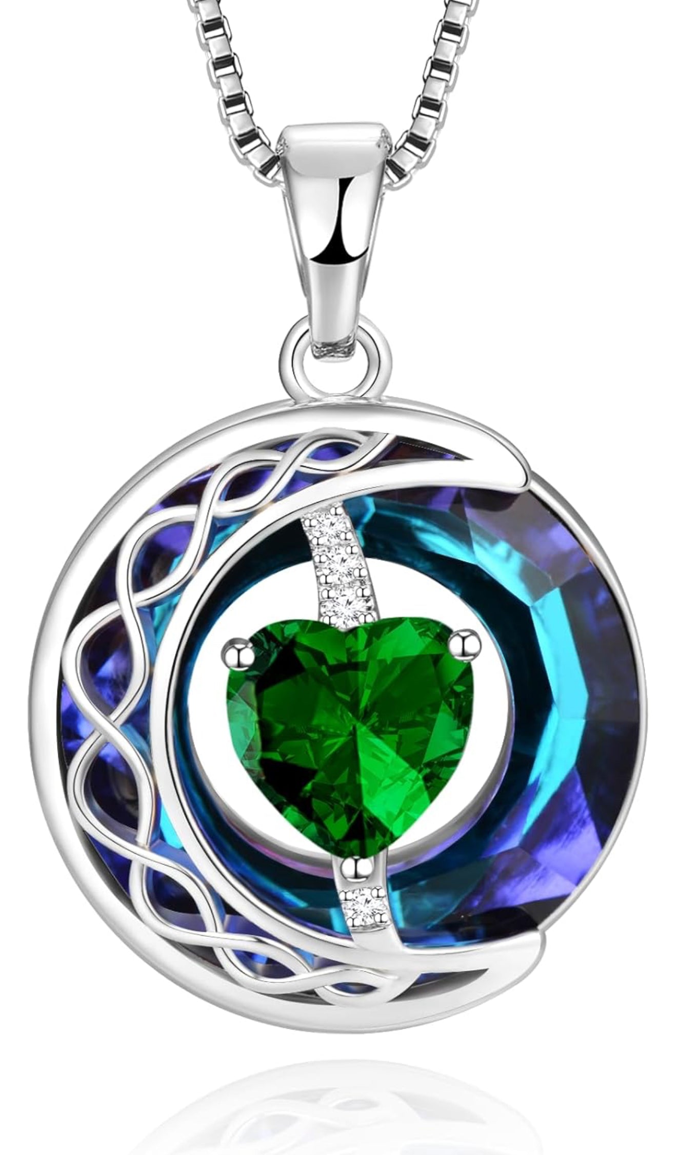 LIANYU Necklace for Womens Emerald Necklace Moon Pendant S925 Sterling Silver Crystal Jewelry for Women Pendant Birthday Gifts for Wife Gifts Valentine Anniversary