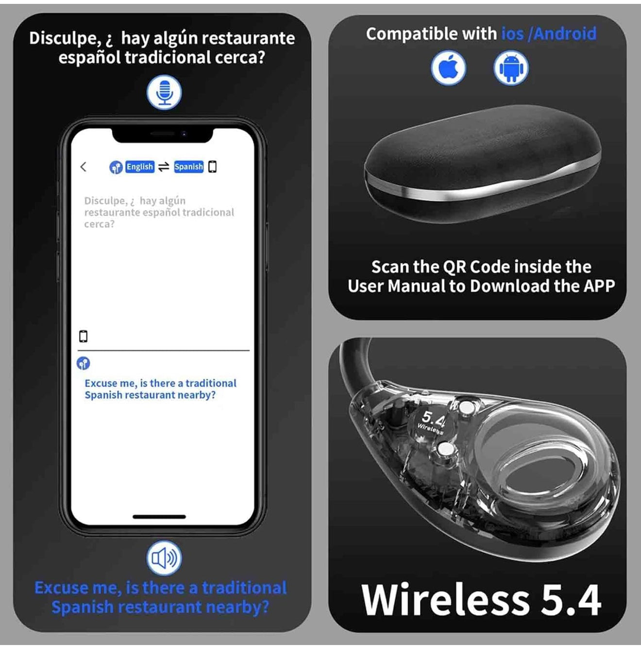Translation Earbuds, Ailymur V2 Language Translator Earbuds, Bluetooth Headset 3-in-1 Ai Wireless, with 144 Languages & 8 Offline Mode for Business Learning Travel (Black) WRYBV HJ02 V5.49