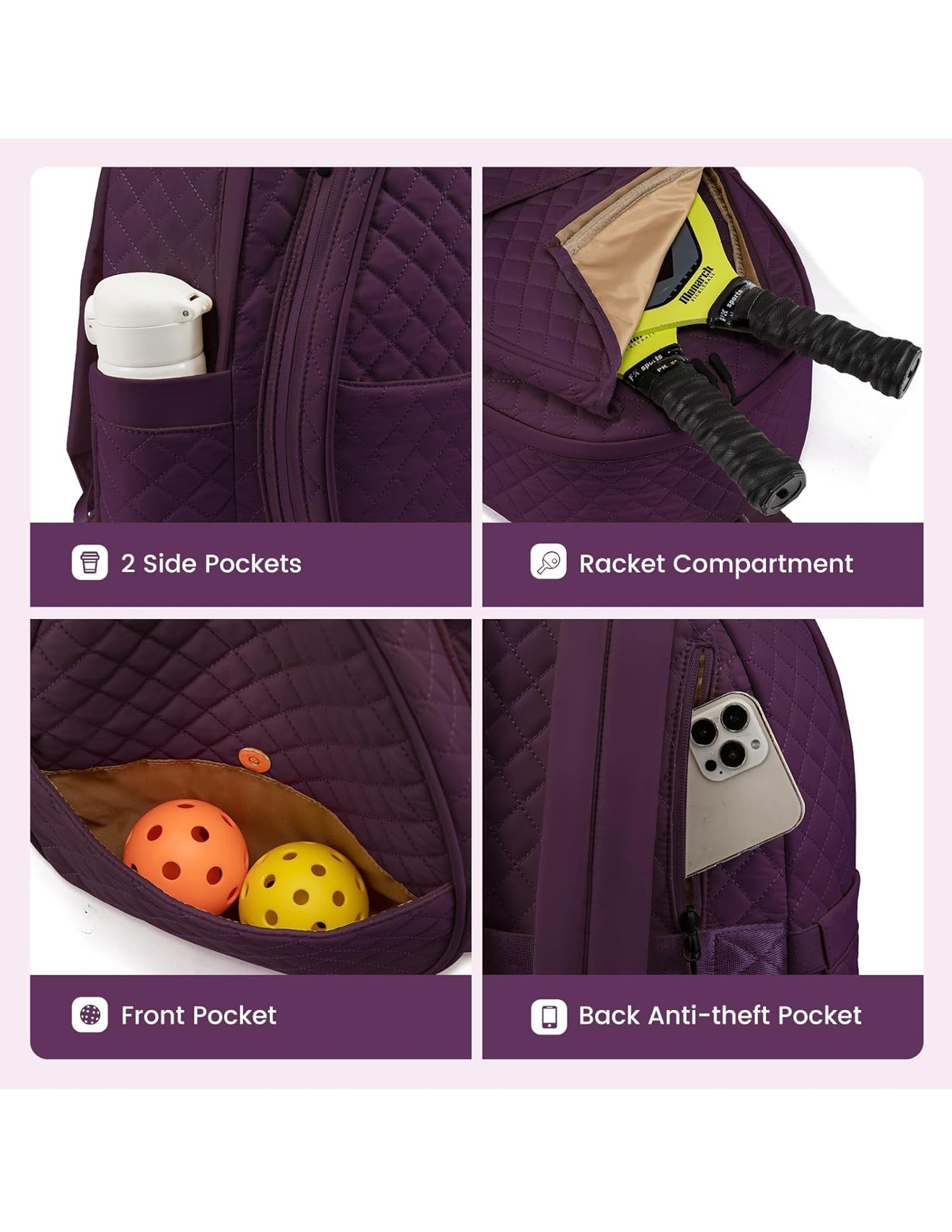 Sucipi Tennis Bags for Women, Quilted Tennis Racket Bag Backpack for Tennis Racquet, Pickleball Paddles, Badminton
