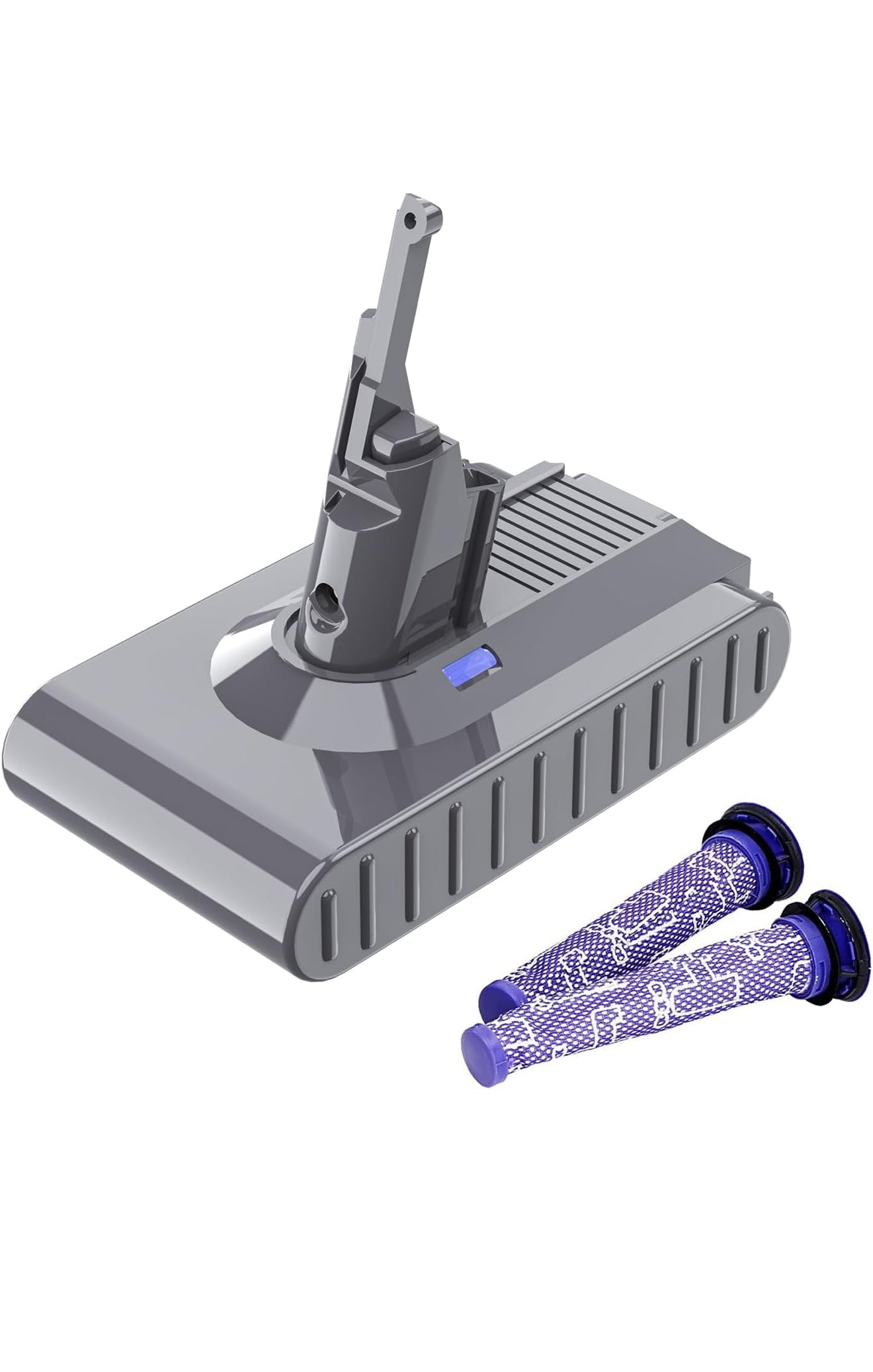 Upgraded 6.0Ah V8 SV10 Battery 215681 Replacement Compatible for Dyson V8 Vacuum Animal/Absolute/Motorhead/Fluffy/SV10 Handheld Cordless Vacuum Cleaner Li-ion 967834 05 Battery【Bonus 2PKS Filters】